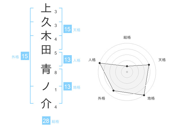 上久木田 青ノ介さんを姓名の画数から五運を鑑定