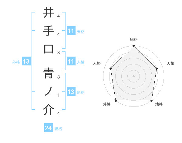 井手口 青ノ介さんの外格は13画の5点!