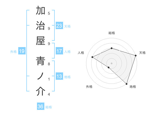 加治屋 青ノ介さんの天格は23画の5点!