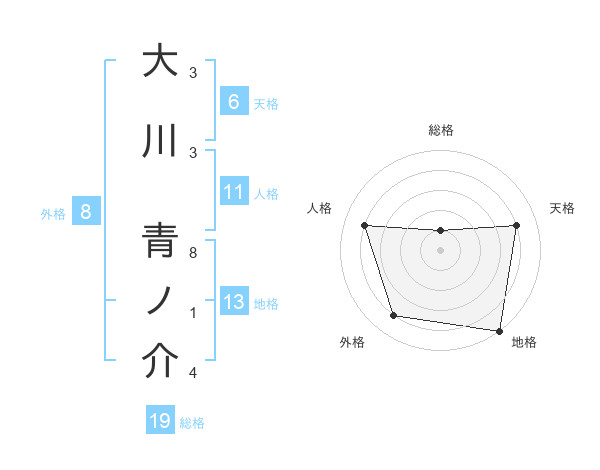 大川 青ノ介さんの外格は8画の4点!