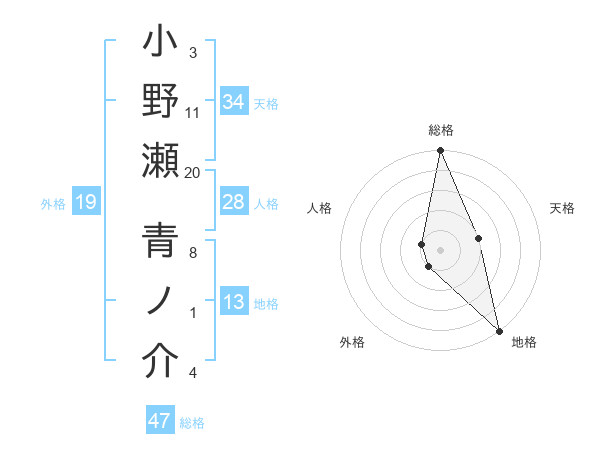 小野瀬 青ノ介さんを姓名の画数から五運を鑑定