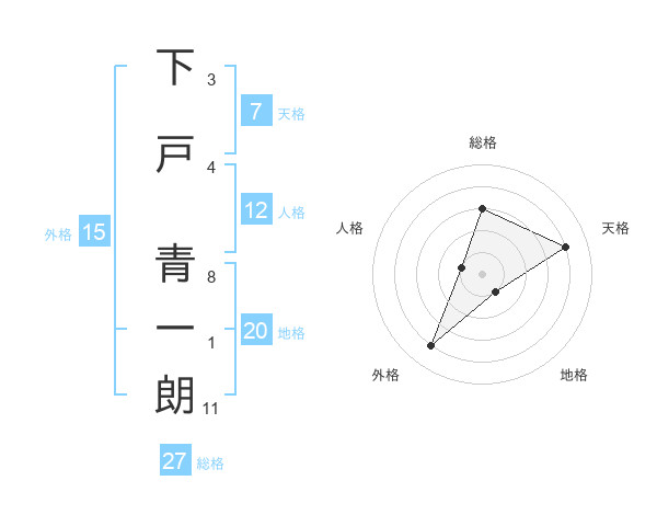 下戸 青一朗さんを姓名の画数から五運を鑑定