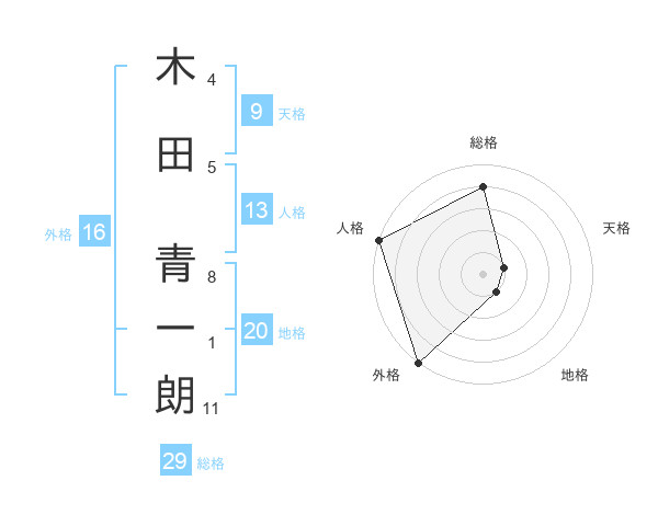 木田 青一朗さんの総格は29画の4点!
