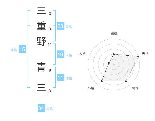 三重野 青三さんの天格は23画の5点!