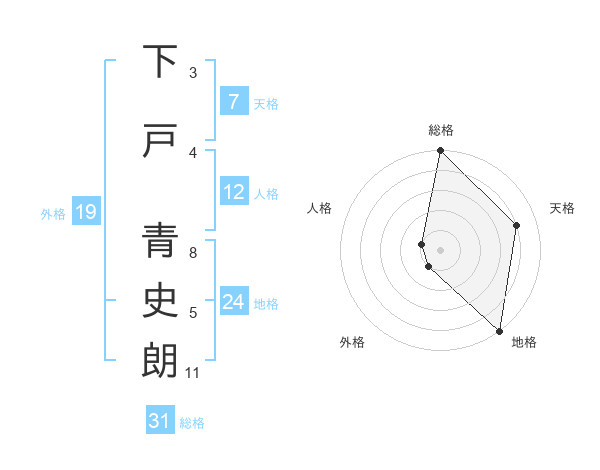 下戸 青史朗さんの総格は31画の5点!