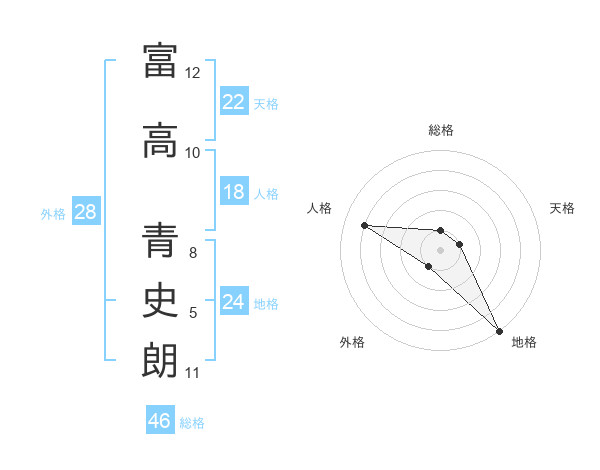 富高 青史朗さんの総格は46画の1点!
