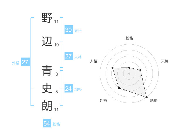 野辺 青史朗さんを姓名の画数から五運を鑑定