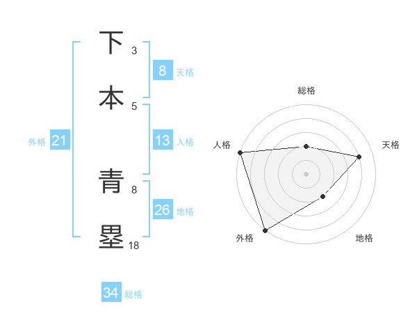 家系が持つ宿命的な運勢を表します。祖先から受け継いだ苗字ですので自分の力が及びません。家柄を象徴します。