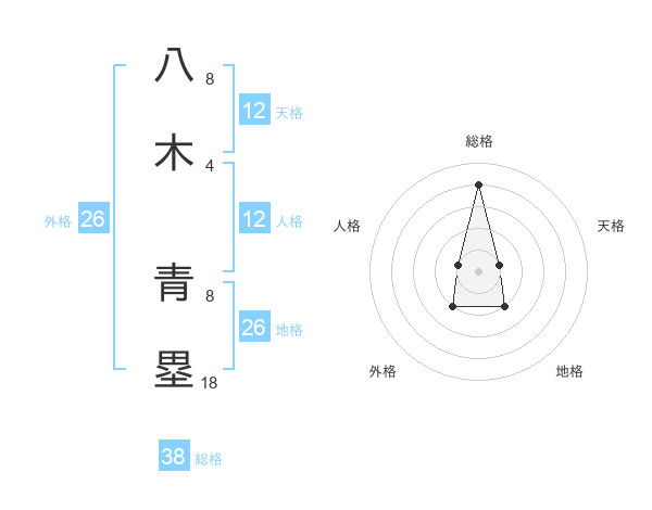 八木 青塁さんの総格は38画の4点!