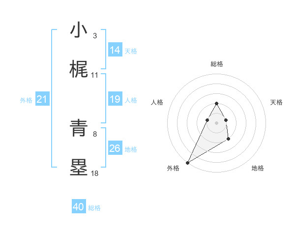 小梶 青塁さんを姓名の画数から五運を鑑定