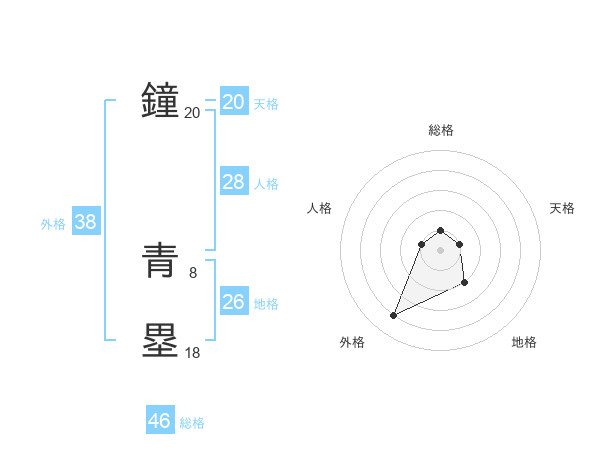 鐘 青塁さんの総格は46画の1点!