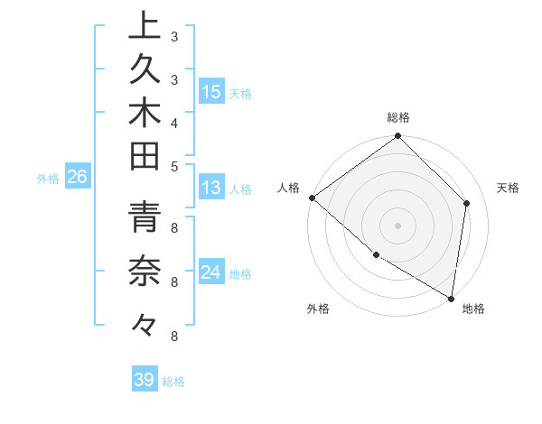 上久木田 青奈々さんを姓名の画数から五運を鑑定