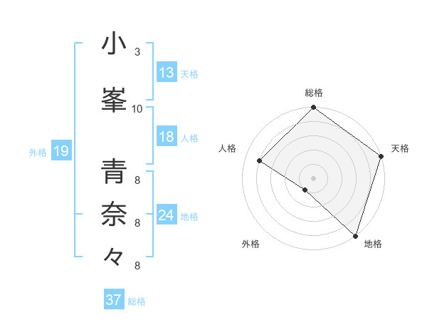 小峯 青奈々さんを姓名の画数から五運を鑑定