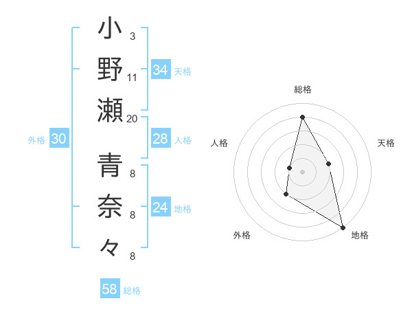 小野瀬 青奈々さんを姓名の画数から五運を鑑定