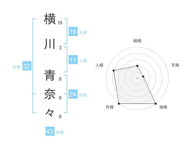 横川 青奈々さんの地格は24画の5点!