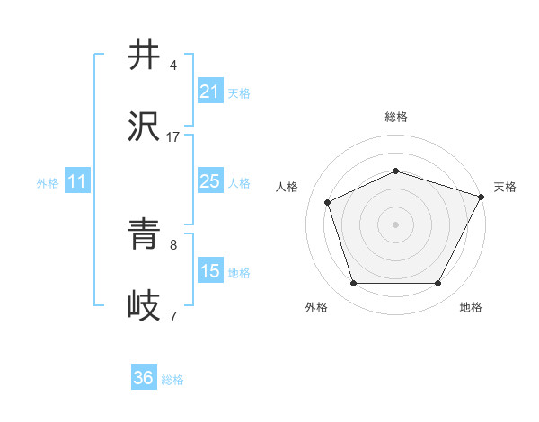 井沢 青岐さんの天格は21画の5点!