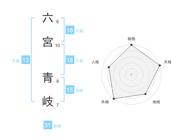六宮 青岐さんを姓名の画数から五運を鑑定