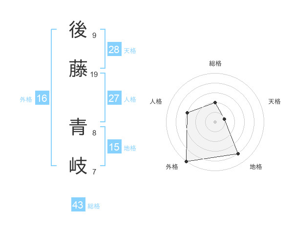 後藤 青岐さんを姓名の画数から五運を鑑定
