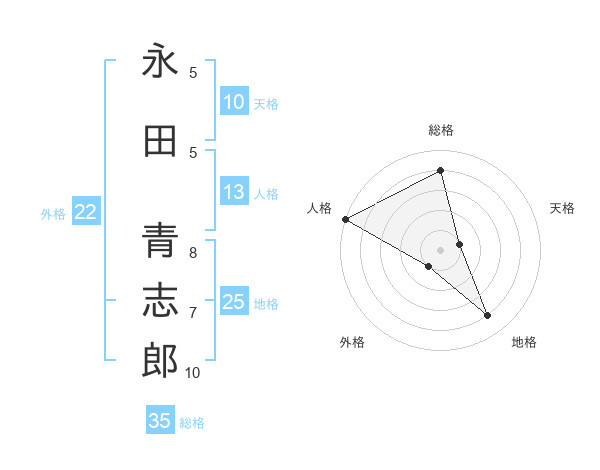 永田 青志郎さんの総格は35画の4点