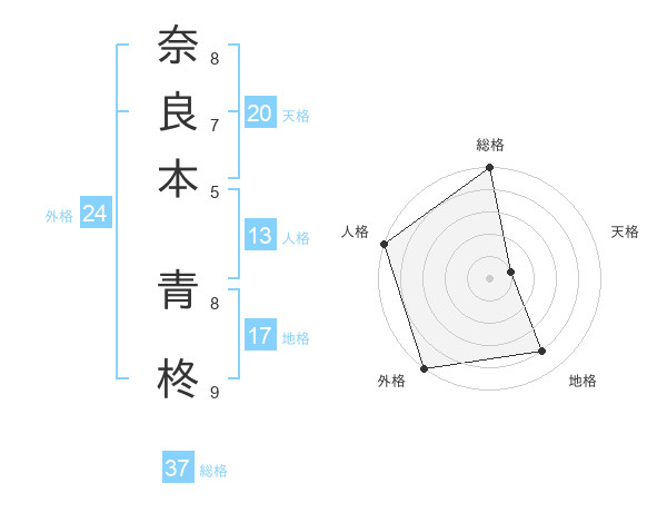 奈良本 青柊さんの総格は37画の5点!