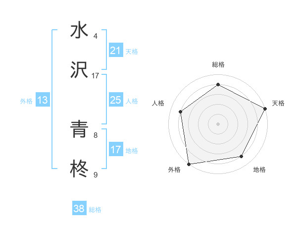 水沢 青柊さんを姓名の画数から五運を鑑定