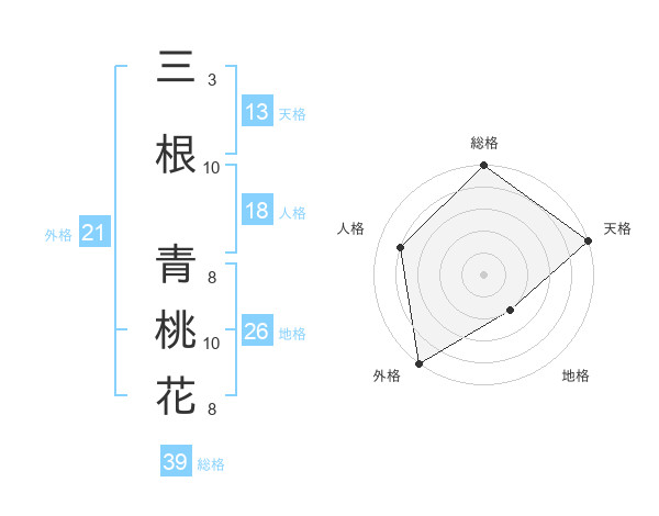 三根 青桃花さんを姓名の画数から五運を鑑定