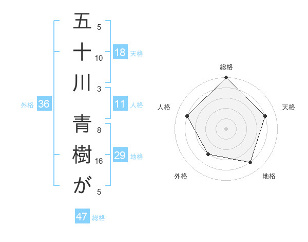 五十川 青樹がさんを姓名の画数から五運を鑑定