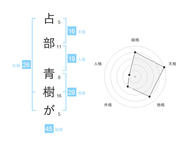 占部 青樹がさんを姓名の画数から五運を鑑定
