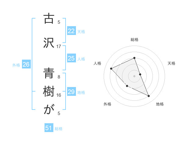 古沢 青樹がさんの総格は51画の3点