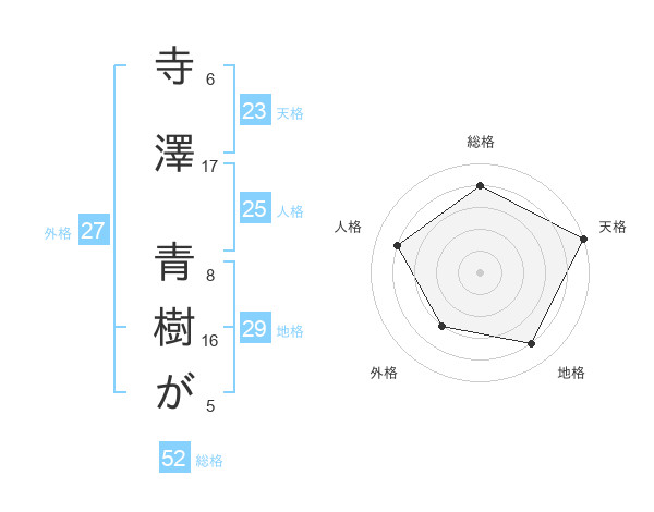 寺澤 青樹がさんを姓名の画数から五運を鑑定