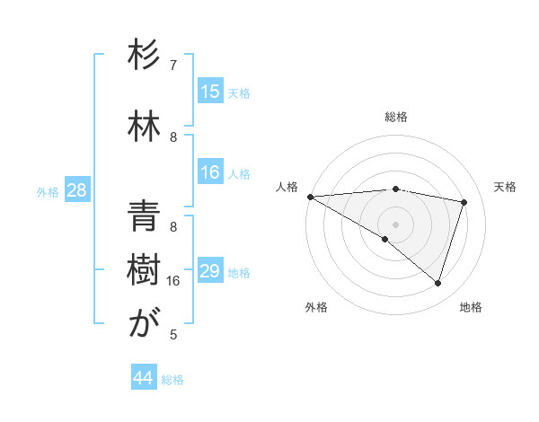 杉林 青樹がさんを姓名の画数から五運を鑑定