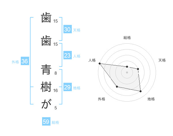 歯歯 青樹がさんの外格は36画の3点!