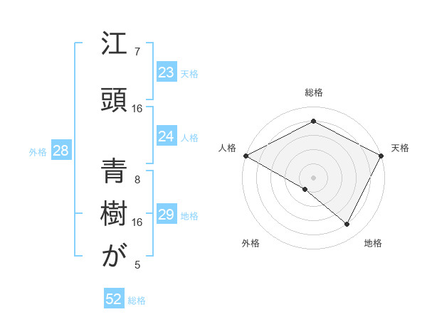江頭 青樹がさんを姓名の画数から五運を鑑定