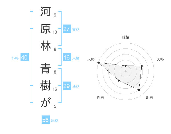 河原林 青樹がさんを姓名の画数から五運を鑑定