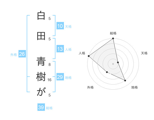 白田 青樹がさんを姓名の画数から五運を鑑定