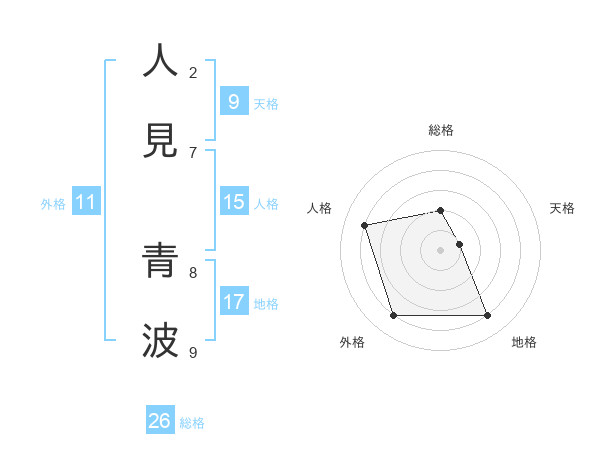 人見 青波さんの総格は26画の2点!
