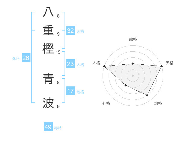 八重樫 青波さんを姓名の画数から五運を鑑定