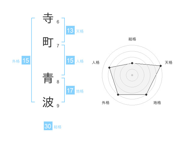 寺町 青波さんの総格は30画の2点!