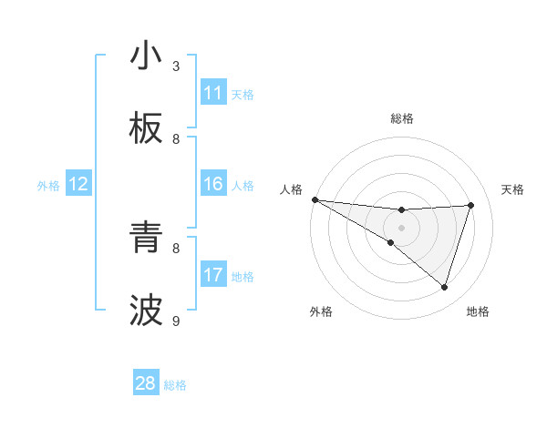 小板 青波さんの天格は11画の4点!