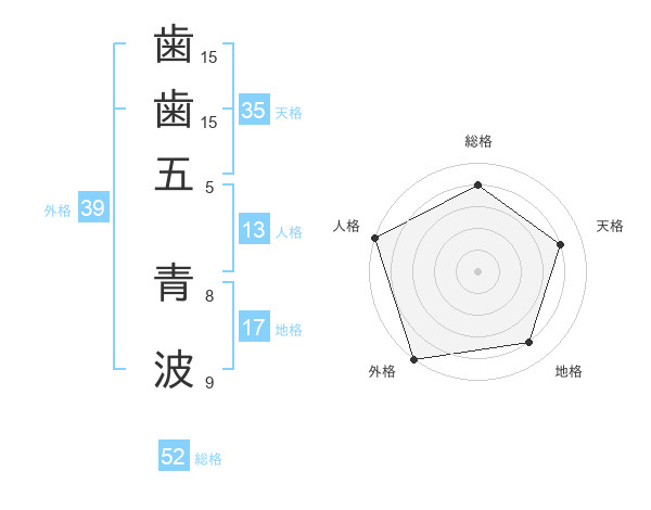 歯歯五 青波さんの外格は39画の5点!
