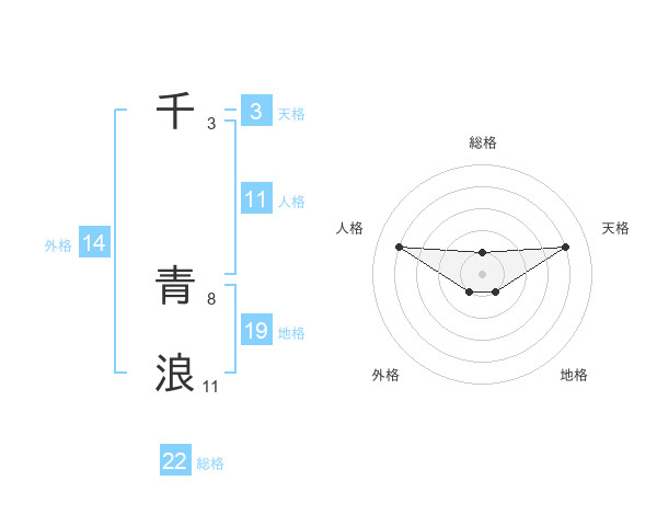 千 青浪さんの総格は22画の1点!