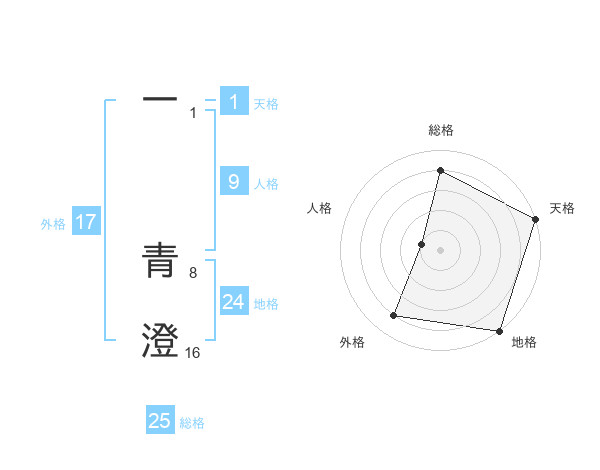 一 青澄さんの地格は24画の5点!