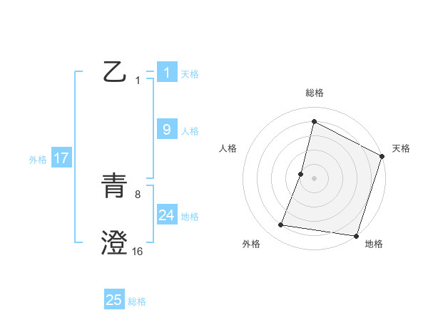 乙 青澄さんの総格は25画の4点!