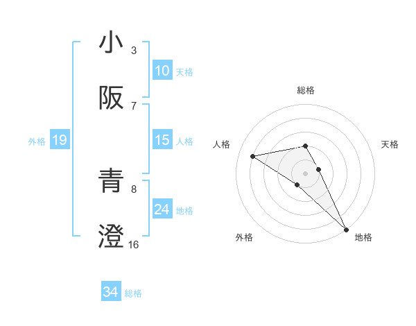 小阪 青澄さんの総格は34画の2点!