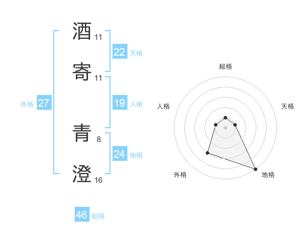 酒寄 青澄さんを姓名の画数から五運を鑑定