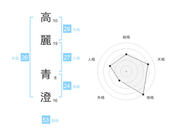 高麗 青澄さんの総格は53画の3点!