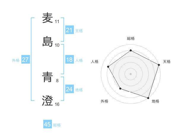 麦島 青澄さんの総格は45画の4点!
