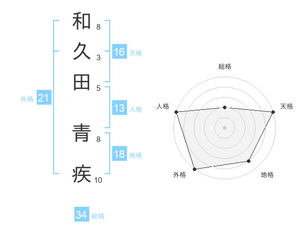 和久田 青疾さんを姓名の画数から五運を鑑定
