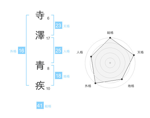 寺澤 青疾さんの総格は41画の5点!