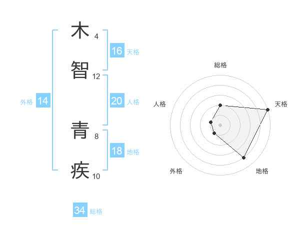 木智 青疾さんの総格は34画の2点!